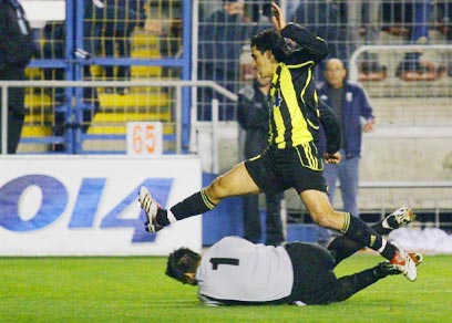 תשע דקות חלפו והפעם שוער מכבי ת"א התעופף באקרובטיות כדי להדוף בקצות האצבעות בעיטה חופשית של כריסטיאן פביאני. הכדור יצא לקרן, הארגנטינאי עלה גבוה מעל כולם, נגח היטב, אבל אורי שטרית הציל מקו השער.