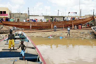 בונים סירות בסנגל. הסירות רעועות ואינן מתאימות למסע (צילום: איי.אף.פי)