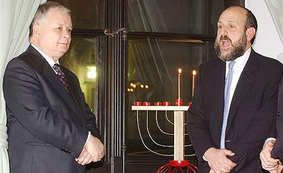 גם בוורשה הדליקו חנוכיה בטקס רשמי, שנערך לראשונה בארמון הנשיאות. בטקס השתתפו הנשיא לך קצ'ינסקי, הרב הראשי של פולין, מיכאל שודריך, והרב שלום דב בר סטמבלר, ראש חב"ד בוורשה. לאחר הדלקת הנרות הוצבה החנוכיה בחלון הארמון. "זהו כבוד גדול עבורנו, היהודים בפולין, להדליק נרות חנוכה כאן, בארמון הנשיאות, יחד עם הנשיא", אמר הרב שודריך.