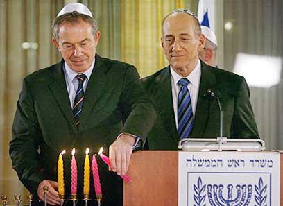 שורה של ראשי מדינות כיבדו אמש (ב') את הקהילות היהודיות בארצותיהם והדליקו נרות חנוכה, וגם ראש ממשלת בריטניה טוני בלייר, העושה בביקור בירושלים, התכבד בהדלקת נרות יחד עם ראש הממשלה אולמרט.