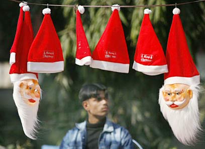 מוכר אביזרים לחג המולד מחכה לקונים שיבואו בניו דלהי, הודו. בגואה יחגגו בצל ההתרעות לפיגוע (צילום: רויטרס)