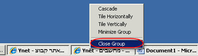 לאחר שבחרתם את היישומים שתרצו לסגור, לחצו על כל אחת מהלשוניות המסומנות (לא משנה איזו - התוצאה תהיה זהה) בעזרת הכפתור הימני של העכבר, ובתפריט שנפתח בחרו באפשרות "סגור קבוצה" (Close Group). שימו לה: החלונות ייסגרו בלי שום התראה נוספת.