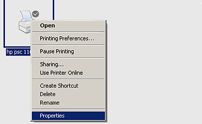 - בחרו במדפסת ברירת המחדל שלך והקלק על Properties (מאפיינים)