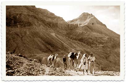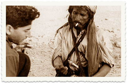אריה בן גוריון וחבריו מ"קבוצת החוגים" ומקיבוץ מעוז חיים - עזרא כדורי, מנשק'ה בביוף, מישל הורביץ ואהוביה מלכין - מצטרפים לסיור, יחד עם מומחה לדרכי המדבר משבט הג'הלין בדרום הר חברון (בתמונה), הם עורכים טיול להכרת הוואדיות סביב ים המלח ולגילוי המכתש הנעלם (הכוונה למכתש הקטן שלא היה מסומן על המפות הבריטיות באותן שנים).