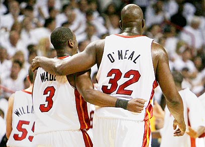 לאורך העונה היו קבוצות מבריקות ממנה, מהירות, יעילות וטובות, אבל פט ריילי, שועל כדורסל ותיק וערמומי, הביא את מיאמי היט לשיא בדיוק ברגע הנכון. והרגע הוא הפלייאוף. לאורך העונה הרדים שאקיל אוניל את הסנטרים בליגה, בפלייאוף הוא טרף אותם. אחרי קרבות אגו מרים עם קובי בראיינט בלוס אנג'לס, פינה אוניל את הבלטה של "השחקן הכי טוב בקבוצה" לסייח הצעיר דוויין ווייד. מי שהיה פעם מלך הראפ של הליגה (זוכרים את הריקוד הנורא של מרק מדסן על אוטובוס האליפות של הלייקרס?) רואה עצמו כעת כאביו הרוחני של פלאש, שלצד שאק הפך העונה לסטאר. אחר כך לאלוף (צילום: רויטרס)