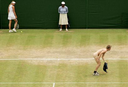 לכיוון הסטריפר החביב שפרץ למגרש בווימבלדון (צילום: רויטרס)
