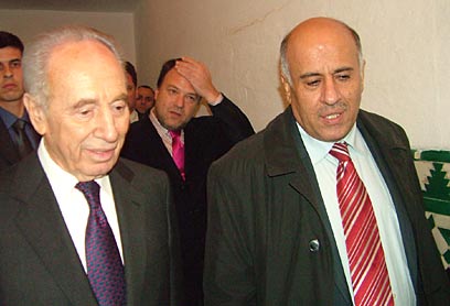 שמעון פרס וג'יבריל רג'וב בסביליה (צילום: יונתן האורסטוק)