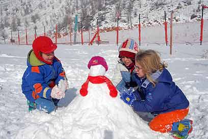 ילדים בונים בובות שלג היום בחרמון (צילום: אביהו שפירא)