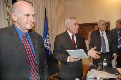 יו"ר הועדה מגידור והנשיא קצב בטקס מסירת הדו"ח. (צילום: נוי)