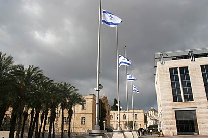 הדגלים בכיכר ספרא בחצי התורן (צילום: דודי ועקנין)