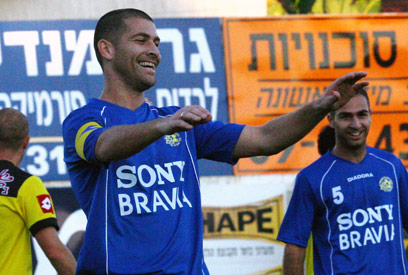 אבי נמני ומכבי ת"א חוגגים בהצגה הצהובה-כחולה (צילום: אלי אלגרט)