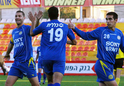 לפני הפרידה מדריקס, נמני ומכבי ת"א חגגו בנתניה (צילום: אלי אלגרט)
