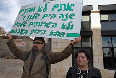 מפגינים נגד זיהום הים (צילום: דורון גולן)