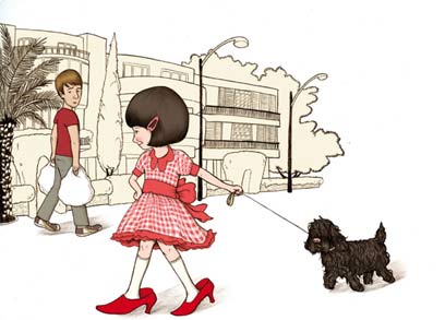 אחרי רבע שעה של שיטוט נואש בנעלי עקב חדשות ובלתי נוחות בעליל, מיכאל לא נראה באופק ואני מחליטה לחזור הביתה. כשאני מתקרבת לבניין אני כבר ממש צולעת, ולכן מורידה את הנעליים ומדדה יחפה על המדרכה. כמובן שדווקא אז מיכאל מופיע. "יש בעיות?", הוא שואל אותי בחיוך, בעוד אני מרקדת על המדרכה הקפואה בגרבי ניילון קרועים ומטונפים.