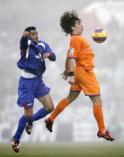 פויול עולה לכדור גובה, גם הוא לא הצליח לעצור את חטאפה (רויטרס)