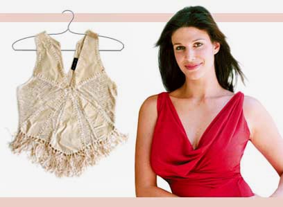 "גופייה בצבע בז' בת כמה שנים של BEBE מסריג קרושה. בול מירי בוהדנה והכי לא אני. לא לבשתי אותה מעולם".