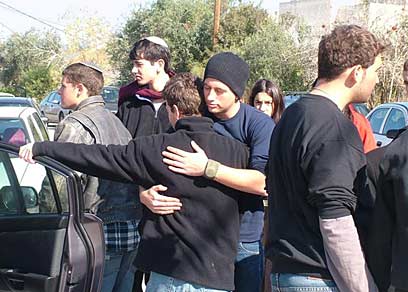 החברים מול בית משפחת בן חורין. (צילום: אחיה ראב"ד)