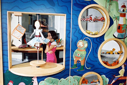 בתערוכה ניתן להפעיל ולשחק עם המוצגים-צעצועים ובכולם קיים אלמנט של הפתעה המגרה ומעורר את הסקרנות והדמיון. הרעיון שעומד מאחורי בנייתה של התערוכה הוא הגדלה של צעצועים מוכרים ואהובים תוך חשיפת מנגנוני ההפעלה המכניים שלהם. אפשר לגלגל כדורים, להעיף דאונים ועוד. מי שיחפוץ יוכל להמשיך ולבדוק או לעבור לצעצוע הבא. בני המוטורי התקבע על הקורקינט עם הגלגלים המרובעים וסירב לעבור לצעצוע הבא.