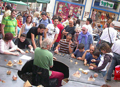 דוד הירש משחק עם אנשים בנחלת בנימין (צילום: אפרת תורג'מן)