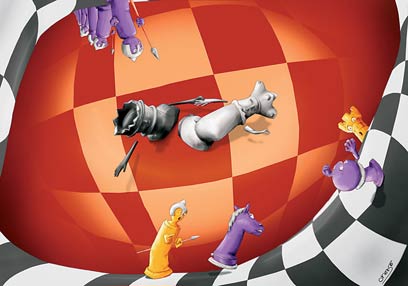 שח-מט. פרשנות אישית (איור: אורן סומך, אגודת המאיירים בישראל)