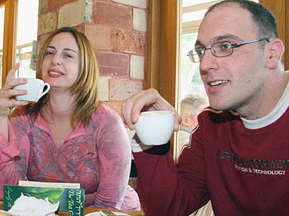 "אני עובדת מזכרון יעקב, והוא עובד מגבעתיים. אבל אנחנו מדברים כל יום שבע פעמים בטלפון. וכן, היו ניצוצות לפעמים, אבל לא היו ויכוחים שהסתיימו בחניקה הדדית, אולי כי אנחנו מאוד רחוקים פיזית. ממש אתמול היה לנו ויכוח".