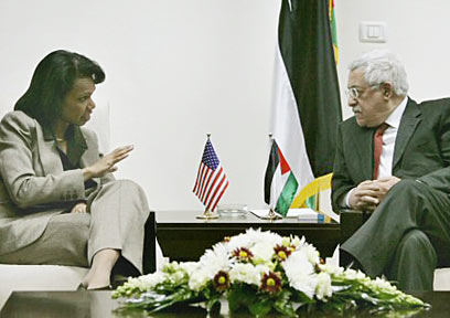 בפגישתם היום ברמאללה - הבהיר נשיא הרשות הפלסטינית למזכירת המדינה כי יש לקדם את תהליך השלום על בסיס מפת הדרכים. רייס: "הסיור באזור נועד להדגיש המחויבות האמריקנית למפת הדרכים ולהקמת מדינה פלסטינית"