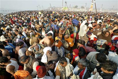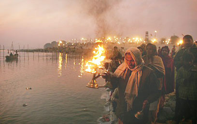 למרות הקור והמים המזוהמים, הגיעו המוני הינדים לעיר אללהבאד שבהודו, כדי לטבול במימי נהר הגנגס, בנקודה שבו הוא מתחבר לנהר היאמונה. לפי האמונה, מימי הנהר יטהרו אותם מחטאיהם וייאפשרו להם להיברא מחדש