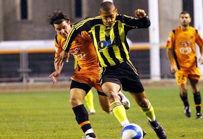 ז'ואנו פינטו בדרך לשער הכתומים, במשחק בטדי (צילום: אלי אלגרט)
