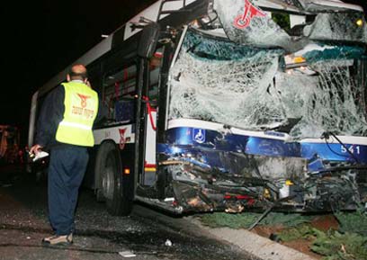 אחד האוטובוסים שהיה מעורב בתאונה (צילום: עופר עמרם)