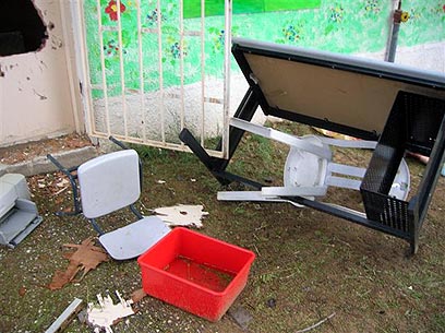 זה לא נעים לראות גן שהכל בו שבור. אלמונים פרצו במהלך סוף השבוע ל"גן לאה" בשכונת עמישב בפתח תקווה וזרעו במקום הרס רב. הבוקר (יום א') גילו הגננת והסייעת את מה שאירע במקום ולאחר התייעצות הוחלט לקיים את הלימודים בגן סמוך, עד אשר ישופץ המקום.