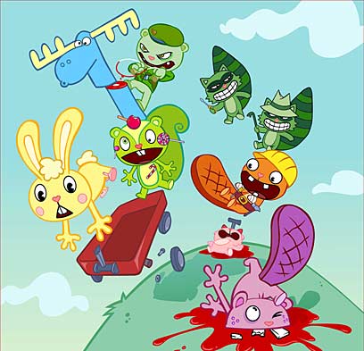 מי שלא מכיר את הסדרה "ידידי העץ המאושרים" (Happy Tree Friends) שמשודרת ביס 2 יכול לטעות ולחשוב ממבט ראשון שמדובר באנימציית מלמולי תינוקות עמוסת טוב לב מתיילד וגדושה בחיות קטנות ומקסימות. אולי ראיתן את הדמויות האלה מחייכות אליכם חיוך מלא שיניים מאיזו חולצה של נער מתבגר. לא בטוח ששמתם לב שהכיתוב מתחת לדמות המתוקה הוא "בי אפרייד". ויש ממה.