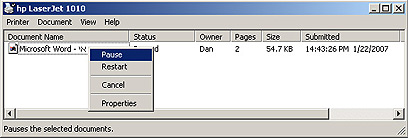 כדי לבטל הדפסה, כל שעליכם לעשות הוא לסמן את ההדפסה שרוצים לבטל – בעזרת הכפתור הימני בעכבר – ובתפריט שנפתח (ראו תמונה בהמשך) יש לבחור ביטול (Cancel). אחר כך תתבקשו לאשר את הביטול.