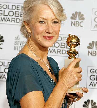 הלן מירן עם גלובוס הזהב על "המלכה" (צילום: איי.אף.פי)