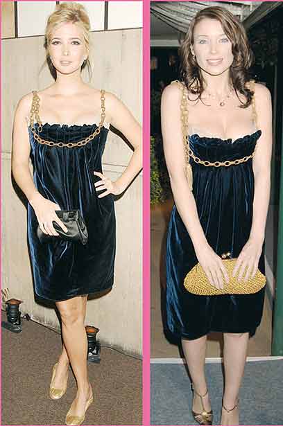 והנה דני מינוג (אחות של) ואיוונקה טראמפ (בת של) בשמלה קטיפתית מעוטרת בשרשרת זהב של "דולצ'ה גבאנה"
