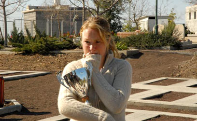 יוליה גלושקו ליד הקבר של תאיר (צילום: גבי פלד, סטודיו פלוס קצרין)