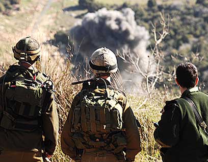 חיילי צה"ל צופים בפיצוץ הבונקרים (צילום: דובר צה"ל)
