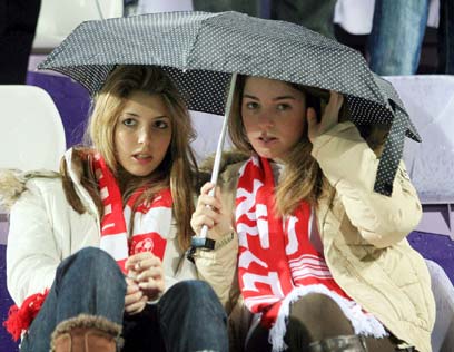 אבל רגע לפני פתיחת המשחק אוהדי שתי הקבוצות התעסקו בכלל במזג האוויר והתפללו כי שערי השמיים יישארו נעולים הערב. הסיבה: האוהדים נדהמו לגלות כי המשטרה לא מאפשרת להכניס מטריות ליציעים, ומאלו שהצליחו להכניס את 'כלי המשחית' לבלומפילד נלקחו המטריות מייד אחר כך. בהמשך נסוגה המשטרה מעט ואיפשרה להכניס מטריות מתקפלות בלבד.