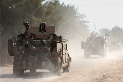 משוריינים של צבא עיראק בפאתי נג'ף, היום (צילום: איי.פי)