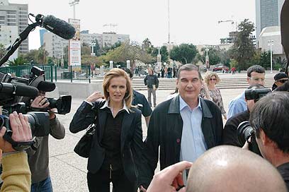 רמון ובת זוגו, מגיעים לבית המשפט (צילום: ניב קלדרון)