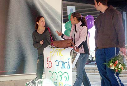 שחר פאר והאחות שני, הבוקר בנתב"ג (צילום: יונתן האורסטוק)