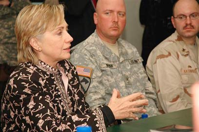 מדלגת בין המחנות. הילארי בעיראק (צילום: איי.פי)