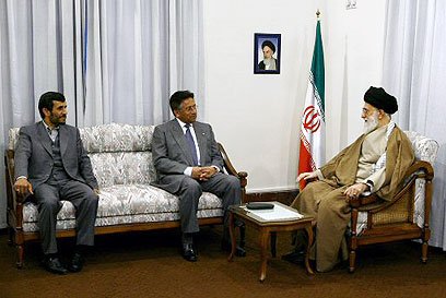 חמינאי, מושארף ואחמדי-נג'אד, היום בטהרן (צילום: סי"צ)