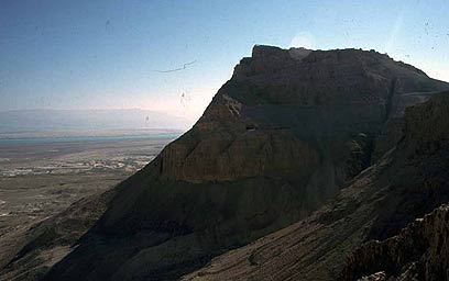 כשעלינו אפשר היה לראות את הכתם הירוק של שמורת עין-גדי שהסיקאריים, במנוסתם מירושלים הבוערת למצדה, שרפו והשמידו מכיוון שאנשי עין גדי, מגדלי בושם האפרסמון, סרבו להגיש להם עזרה. "אבל בעצם כנראה שהמלכים החשמונאים לפני הורדוס, כי מצדה היא במקום מצוין - ממש מול הלשון שמפרידה בין החלק העמוק לחלק הרדוד של ים המלח, על הדרך שחוצה מחברון לכרך שבעבר הירדן".