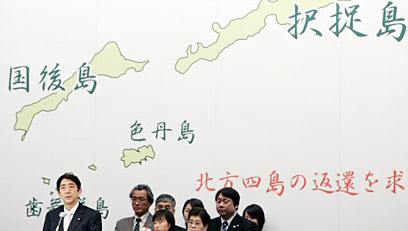 בעצרת השנתית לרגל "יום האזורים הצפוניים", היום שבו מציינים ביפן את ההשתלטות הרוסית על ארבעה איים שהיו בשליטה יפנית עד סוף מלחמת העולם השנייה, אמר ראש ממשלת יפן כי בכוונתו לשים קץ למחלוקת ולהשיב את האיים לריבונות יפנית. בשל המחלוקת, לא חתמו יפן ורוסיה עד היום על הסכם שלום