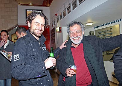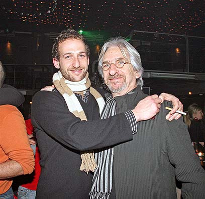 אורי פפר והאב הביולוגי והרוחני. רגע אחרי: שניהם רוקדים על הבר עם בחורות