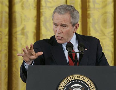 הנשיא בוש היום בוושינגטון. "נגן על חיילינו ועל אזרחינו" (צילום: איי.פי)