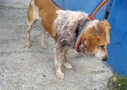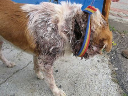 הכלב סבל מחתך בגודל של כ-20 ס"מ לערך ולדברי תמוז, יתכן שהדבר נוצר כתוצאה מהתעללות או שהכלב נחבל בניסיון לעבור במקומות שונים. "כל הפצע הזדהם בצורה קשה, חלק גדול מהבשר היה בשר מת שנרקב. הפצע נמצא גם בנקודה בה הכלב יכול לגרדו עם כפות הרגליים". תמוז מיהר להביא את הכלב למרפאת העמותה.