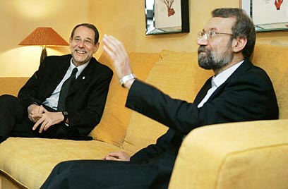 לריג'אני (מימין) וסולאנה, בפגישתם לפני שבוע (צילום ארכיון: סי"צ)