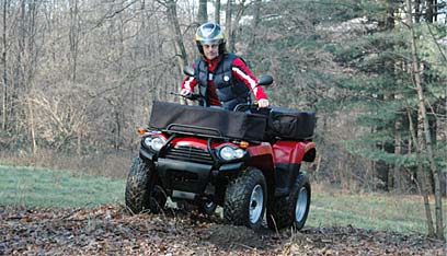 ה"קנטרי קוואד" (Country Quad) מונע על ידי מנוע חשמלי עם הספק של כ-5.5 כ"ס, שמחובר לתיבת הילוכים אוטומטית רציפה. עם משקל עצמי של כמעט 390 ק"ג הוא מגיע לכ-40 קמ"ש, מה שמייד מבהיר שמדובר בטרקטורון עבודה ולא למטרות ספורטיביות. למה כל-כך כבד? מצברים - שישה במספר, 12 וולט כל אחד.