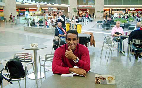 הברזילאי וולינגטון מרוצה, לפני ההמראה לסקוטלנד (צילום: רותם גרוסמן)